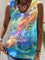 Blue Casual V Neck Printed Sleeveless Tank