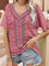 This red casual graphic top features a V-neck design and short sleeves, making it a stylish choice for warm days. The vibrant print adds a fun touch, perfect for expressing your personality. Pair it with jeans or shorts for a laid-back yet trendy look that's great for everyday wear.