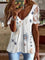 White Casual V Neck Floral Printed Short Sleeve Blouse