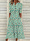 Cyan Casual V Neck Floral Printed Half Sleeve Dress