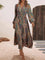 Elegant Paisley Print V-Neck Long Sleeve Midi Dress
