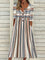 Khaki Casual V Neck Stripe Half Sleeve Dresses