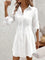 Modern White Plain Collared Long Sleeve Mini Dress