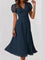 Navy Plain V-Neck Short Sleeve Midi Dress