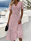This pink V-neck midi dress features short sleeves and a flattering silhouette, perfect for both casual and semi-formal occasions. Its mid-length design offers a balanced look that combines comfort with elegance, making it a versatile addition to your wardrobe. The soft fabric ensures ease of movement while maintaining a polished appearance.