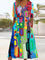 Special V-neck Short Sleeve Side Pocket Midi Dress