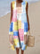 Women's Colorful Abstract Checkered Art Print Crew Neck Sleeveless Dress