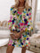 Women's Colorful Floral V Neck 3/4 Sleeve Mini Dress