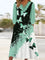 Women's Long Sleeve V-neck Graphic Printed Lace Stitching Midi Dress