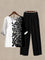 This black casual two-piece set features a round-neck, half-sleeve top adorned with a delicate floral print, offering a simple yet stylish design. The matching bottoms complete the outfit, making it perfect for relaxed outings. Comfortable and fashionable, this set blends ease with a timeless floral pattern for everyday elegance.