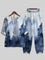 Blue Casual Round Neck Ink Forest Printed Half Sleeve Two Piece Suit