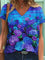 Casual V-neck Short Sleeve Floral Printed Blouse