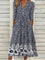 Dark Blue Casual V Neck Floral Printed Half Sleeve Dress