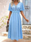 V-neck Short Sleeve Blue Plain Midi Dress