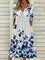 White Casual Round Neck Leaves Printed Short Sleeve Dresses