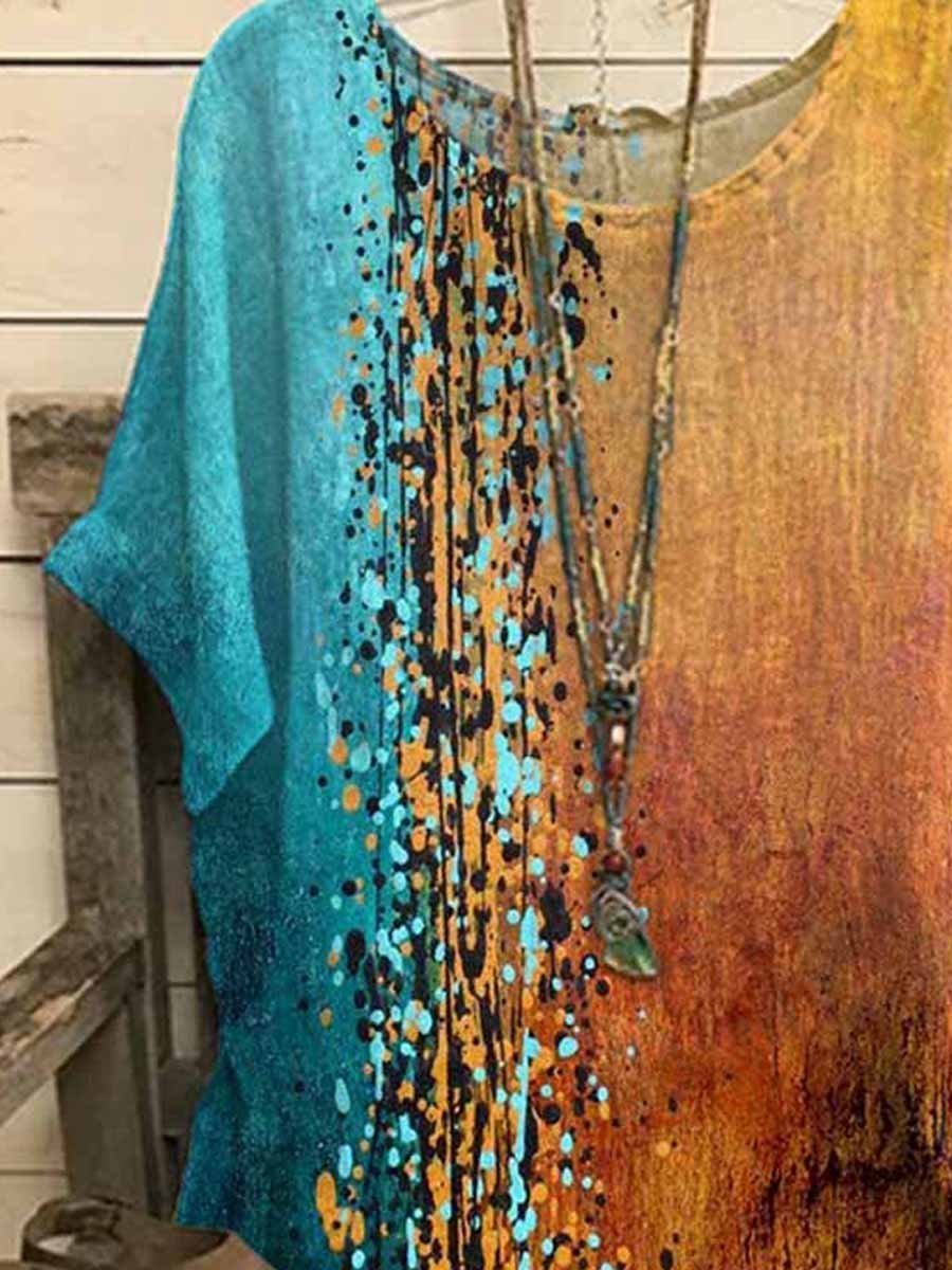 This casual top showcases an eye-catching abstract colorblock design that brings an artistic, modern feel to your everyday wardrobe. Designed with a relaxed silhouette, short sleeves, and a classic round neckline, it offers easy comfort and effortless style. Perfect for pairing with jeans, leggings, or casual trousers, it’s ideal for daily wear, travel, and relaxed weekends. Available in multiple color options to suit different personal styles.