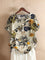 Allover Plants Print Button Front Short Sleeve Blouse