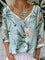 Blue V-Neck Floral Print Long Sleeve Top