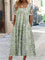Women's Short Sleeve Square Collar Floral Printed Lace Stitching Midi Dress