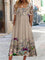 Women's Short Sleeve Square Collar Floral Printed Lace Stitching Midi DressWomen's Short Sleeve Square Collar Floral Printed Lace Stitching Midi Dress