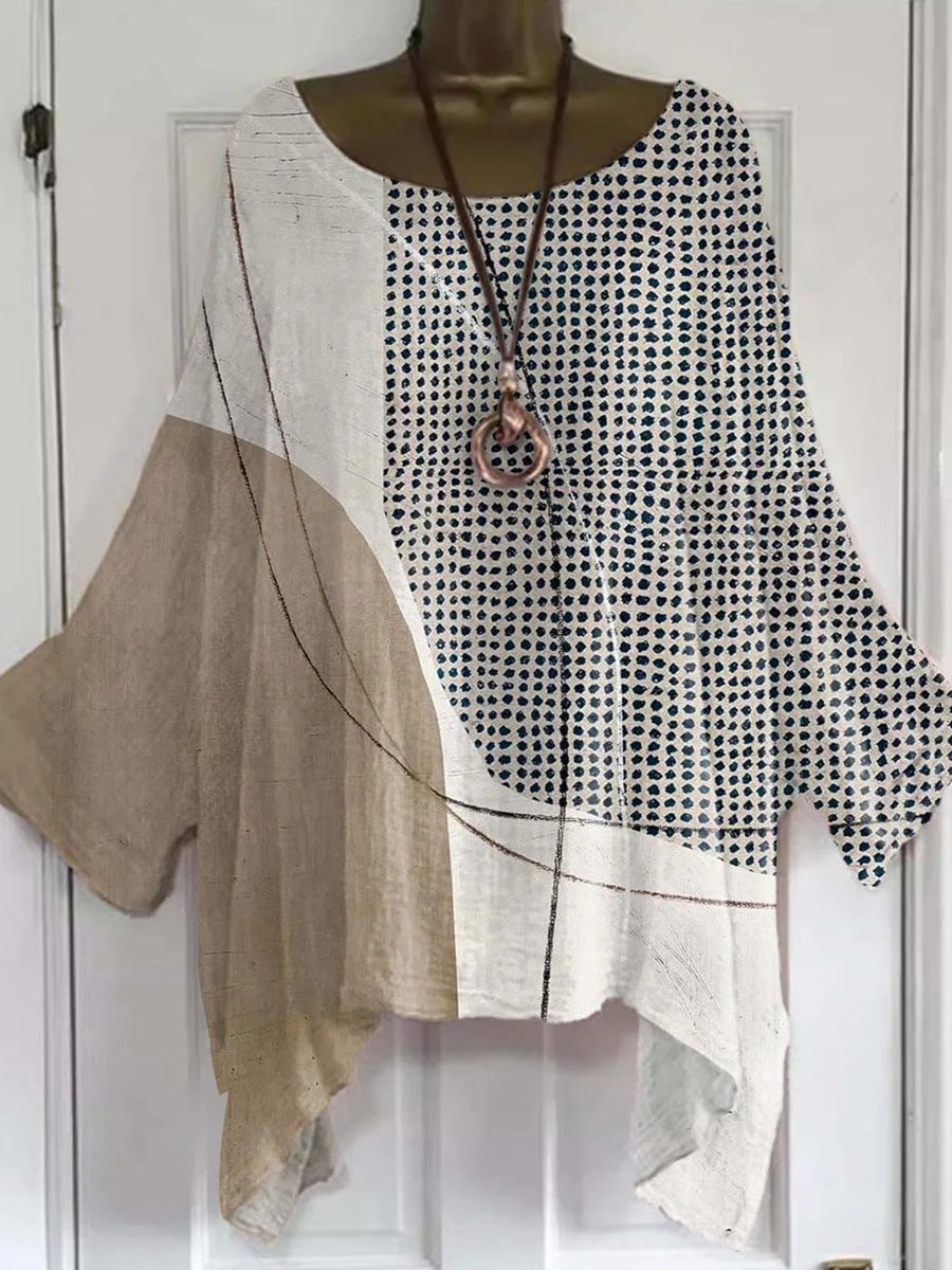 Women's Geometric Pattern Art Print Casual Round Neck Long Sleeve Top